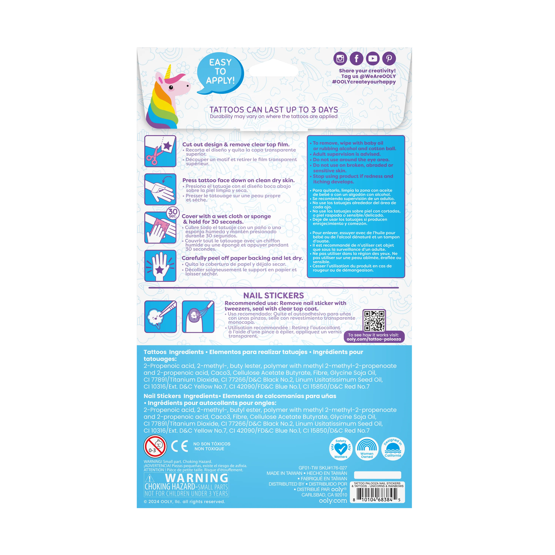 Tattoo-Palooza, Tattoos & Nail Stickers - Unicorns & Rainbow