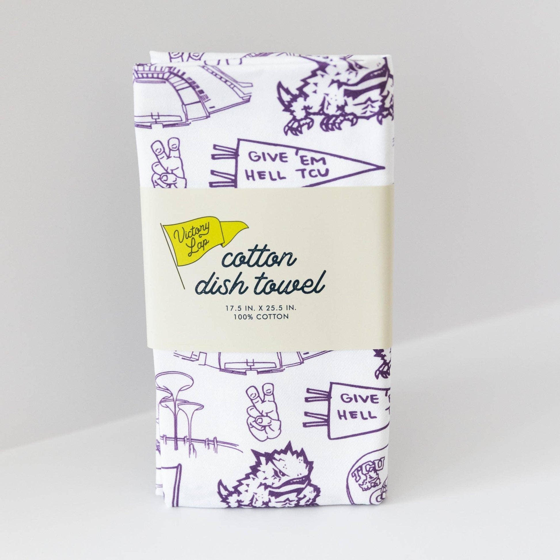 Show your school spirit in style with this officially licensed Texas Christian University collegiate printed kitchen towel! Featuring iconic TCU graphics like the TCU logo, Horned Frog mascot, and memorable campus landmarks. Perfect for alumni, students, or devoted fans. Made from soft, absorbent cotton, it’s as functional as it is fashionable—ideal for drying dishes, wiping counters, or adding a pop of pride to your kitchen décor.