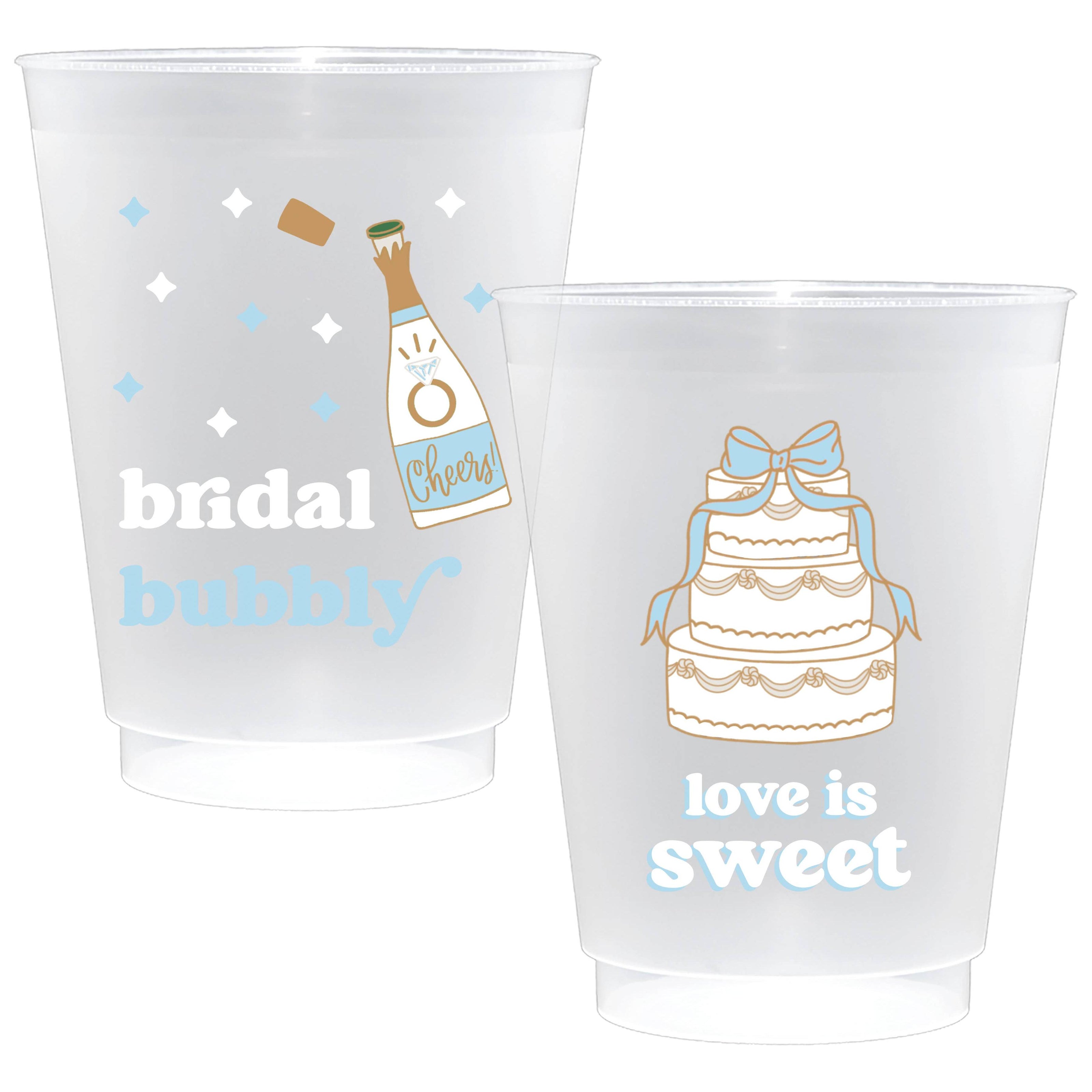 Bridal Bubbly Love is Sweet Shatterproof Frost Flex Plastic Cups (10)