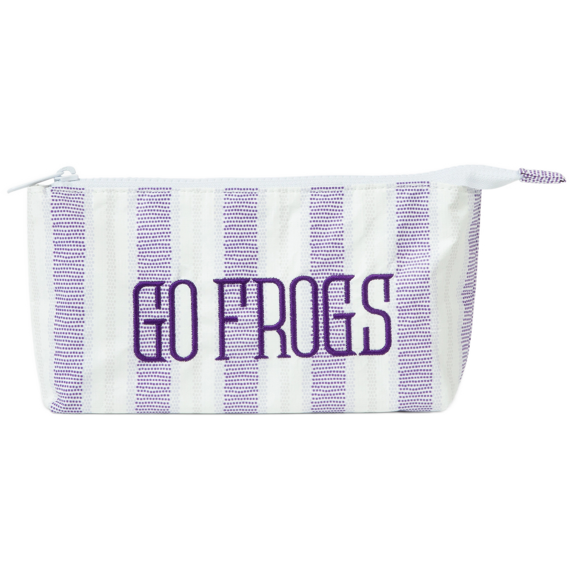 Show off your Horn Frog pride with our embroidered Tyvek® pouches, perfect for organizing projects, travel essentials, makeup, school supplies, and more. Made from lightweight, recyclable Tyvek®, our waterproof pouches are built to handle any adventure, from daily errands to beach getaways. They also make a fantastic graduation gift, ensuring your favorite grad stays on brand with their university. Durable, sustainable, and endlessly useful—these pouches are a must-have for any occasion! Pouch Dimensions Medium: 10” X 7” Officially licensed through CLC.