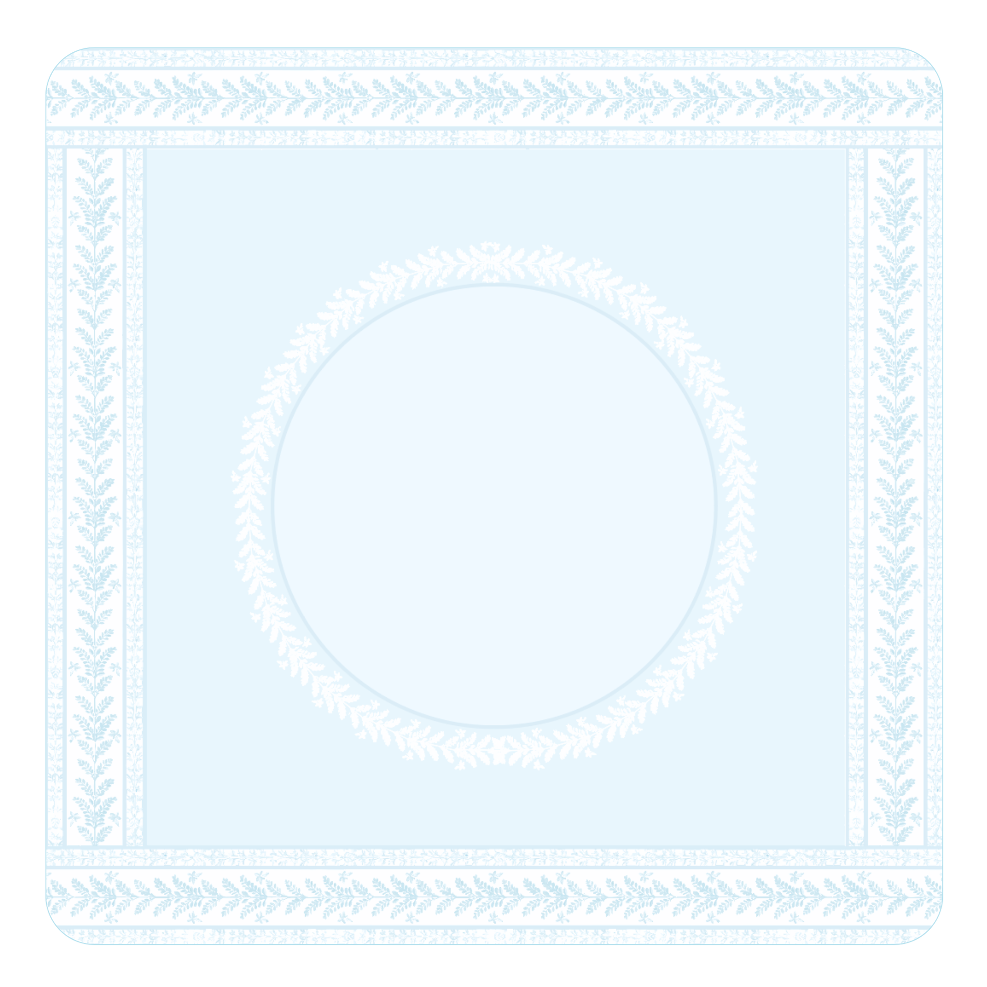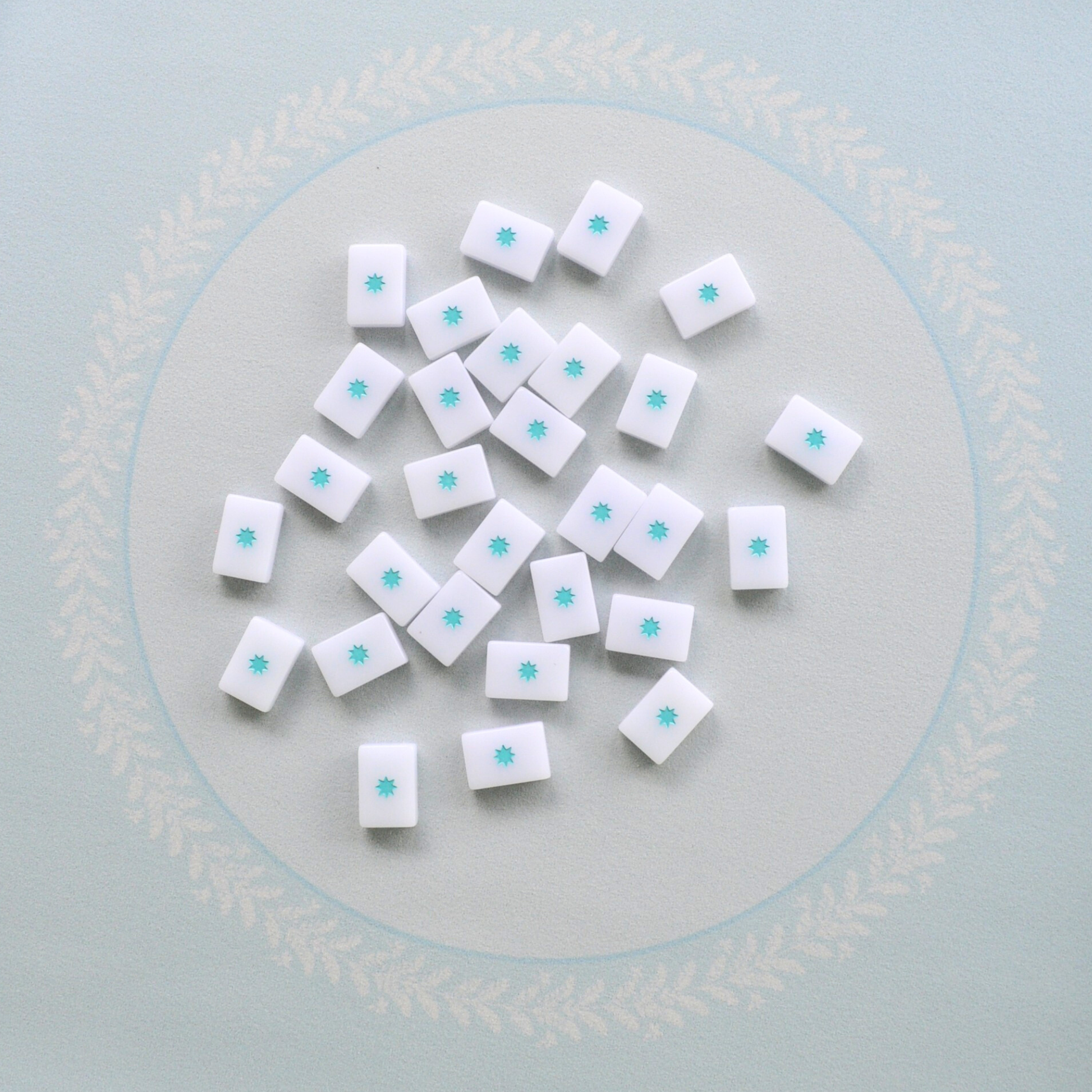 Well, we’re in love. What started as our attempt to make a winter wonderland, ice, snow, natural outside mat quickly became our favorite mistake. “Wait! This blue is perfect for winter, spring, summer, and fall!” Snowflakes, yes, but also the blue sky of spring peeking through, the deep greens and blues of a hazy summer day, and the wispy cloud coverage of a fall afternoon.