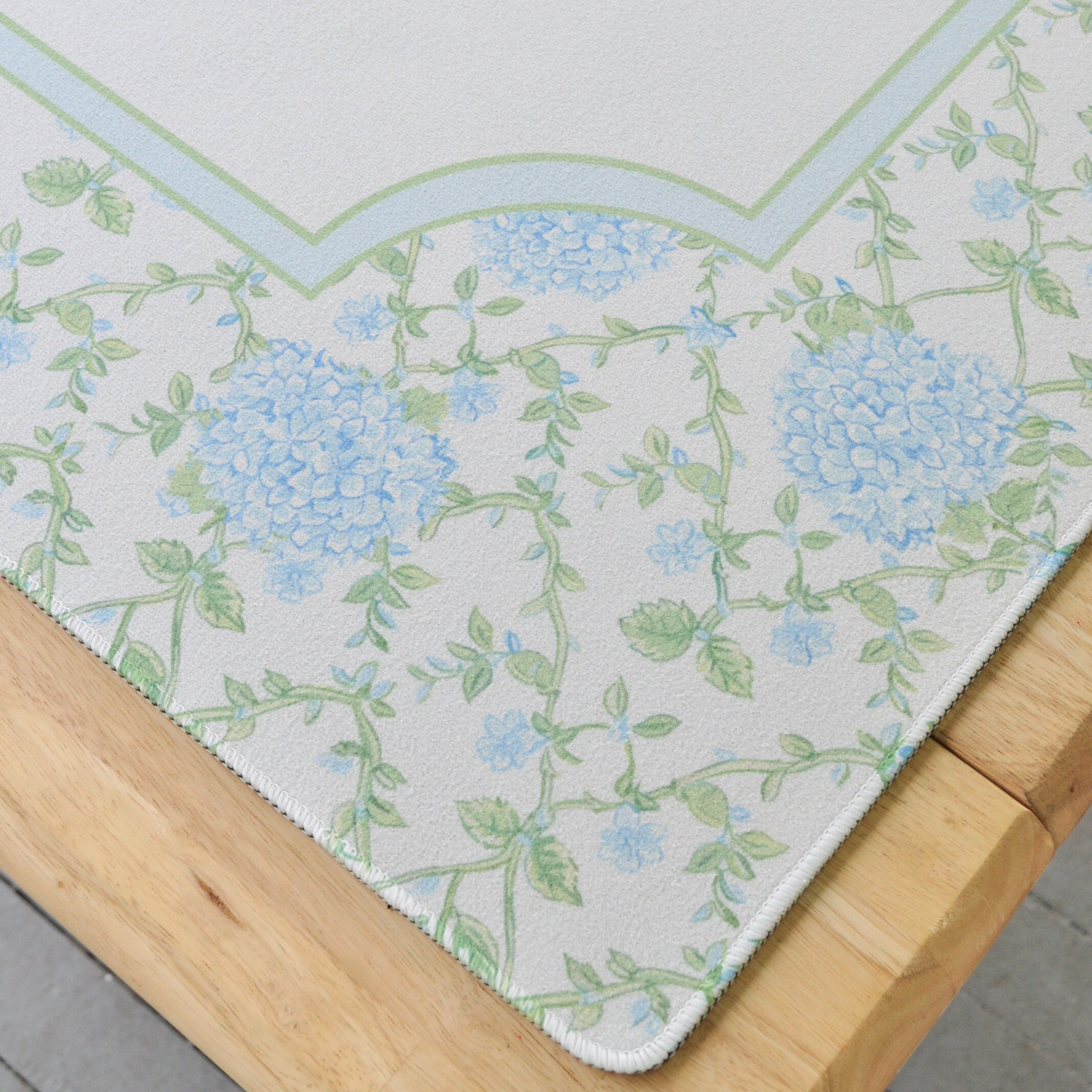 Features and dimensions: machine washable, air dry, neoprene top, 3mm thick rubber non slip back, 33” x 33” square.