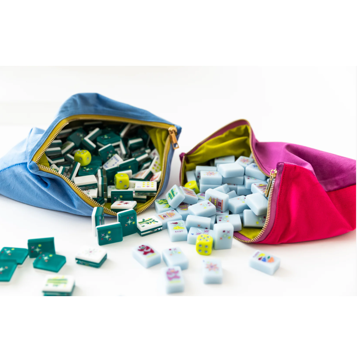 The tile set comes with a velvet tiles bag, two dice and a tile guide that shows all of the tile designs on one side and some things to remember about the game of mahjong on the other side, just in case you need a quick refresh.