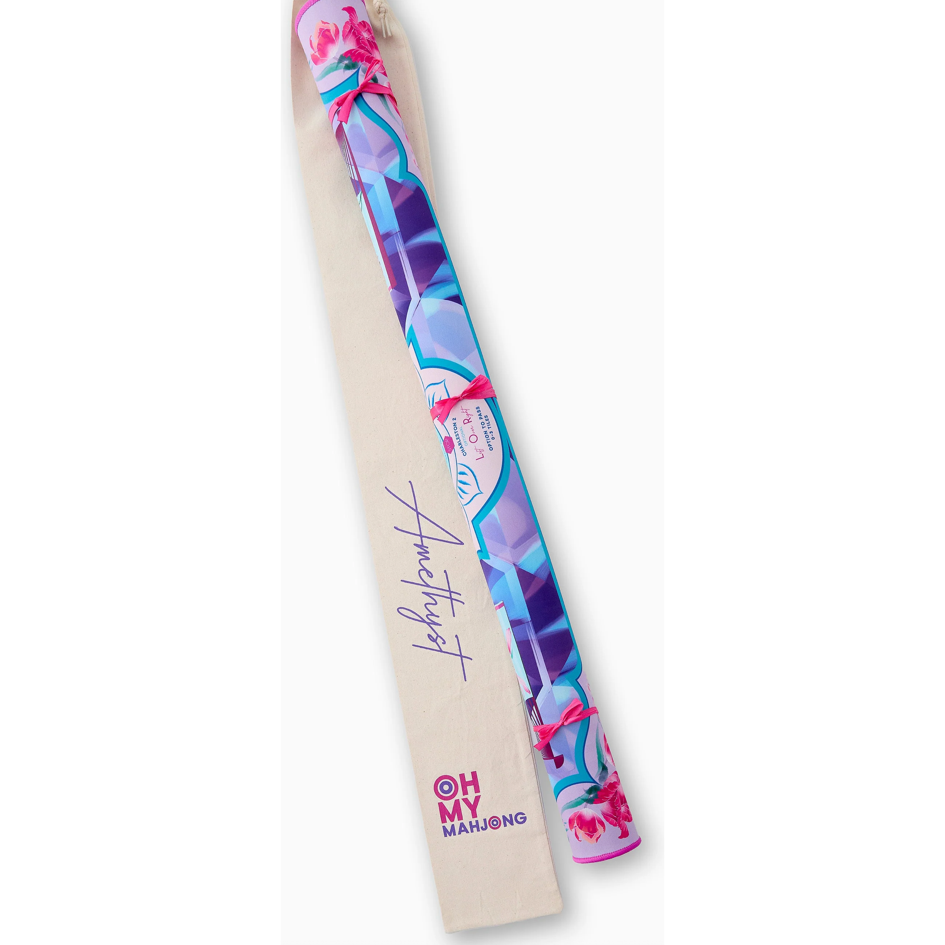 The Amethyst Mahjong Mat, crafted in collaboration with Rebecca Hastings, brings a dreamy, jewel-toned elegance to your game table. Designed to complement the serene and vibrant Gemma Tiles, this mat features a harmonious blend of purples, pinks, blues, and soft greens. The Amethyst mat is a whimsical ode to twilight skies and shimmering gemstones. Made from neoprene for easy cleanup and featuring a secure rubber non-slip backing, Amethyst ensures a flawless playing experience. Instructional reminders line the edges for a game that’s as smooth as it is stylish.
