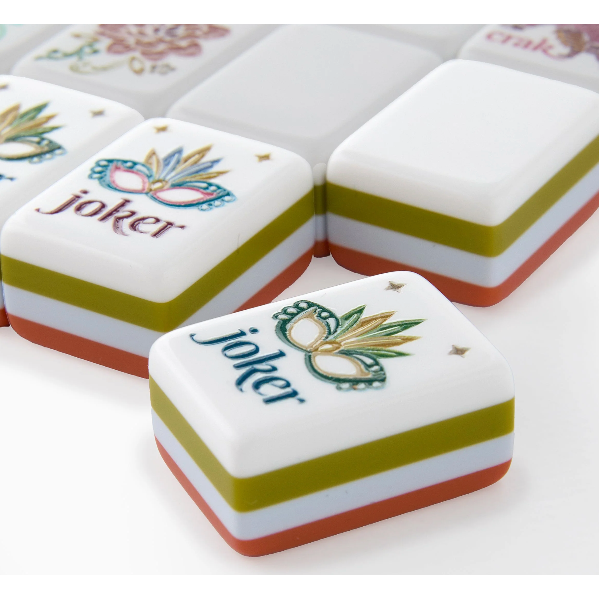 What's included: Tiles, a Dice/Coin Bag, and 4 Instructional Cards (you must purchase the NMJL Playing Card separately if you play American Mahjong).
