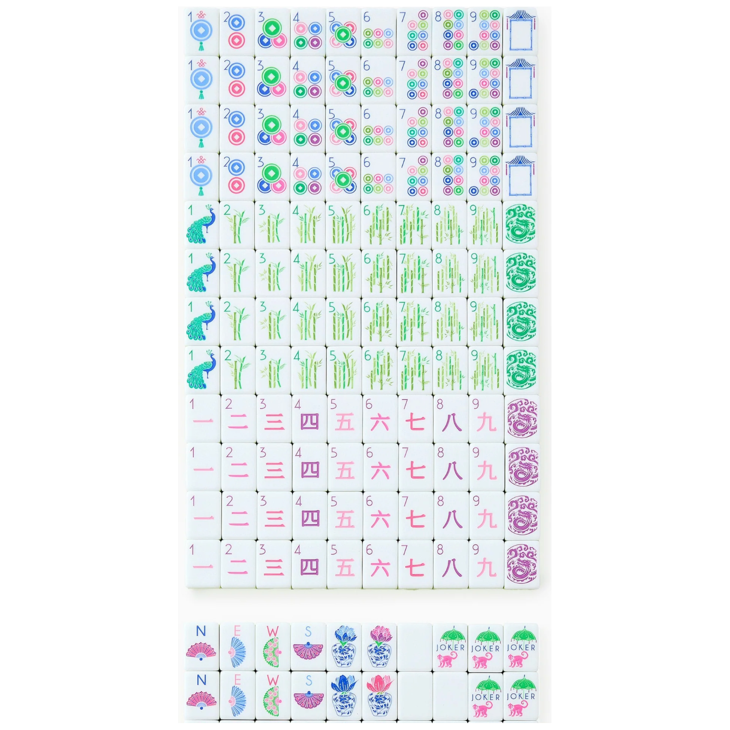 Set includes Tiles, Dice/Coin Bag and 4 Instructional Cards (If playing American Mahjong, will need to purchase NMJL Playing Card separately.