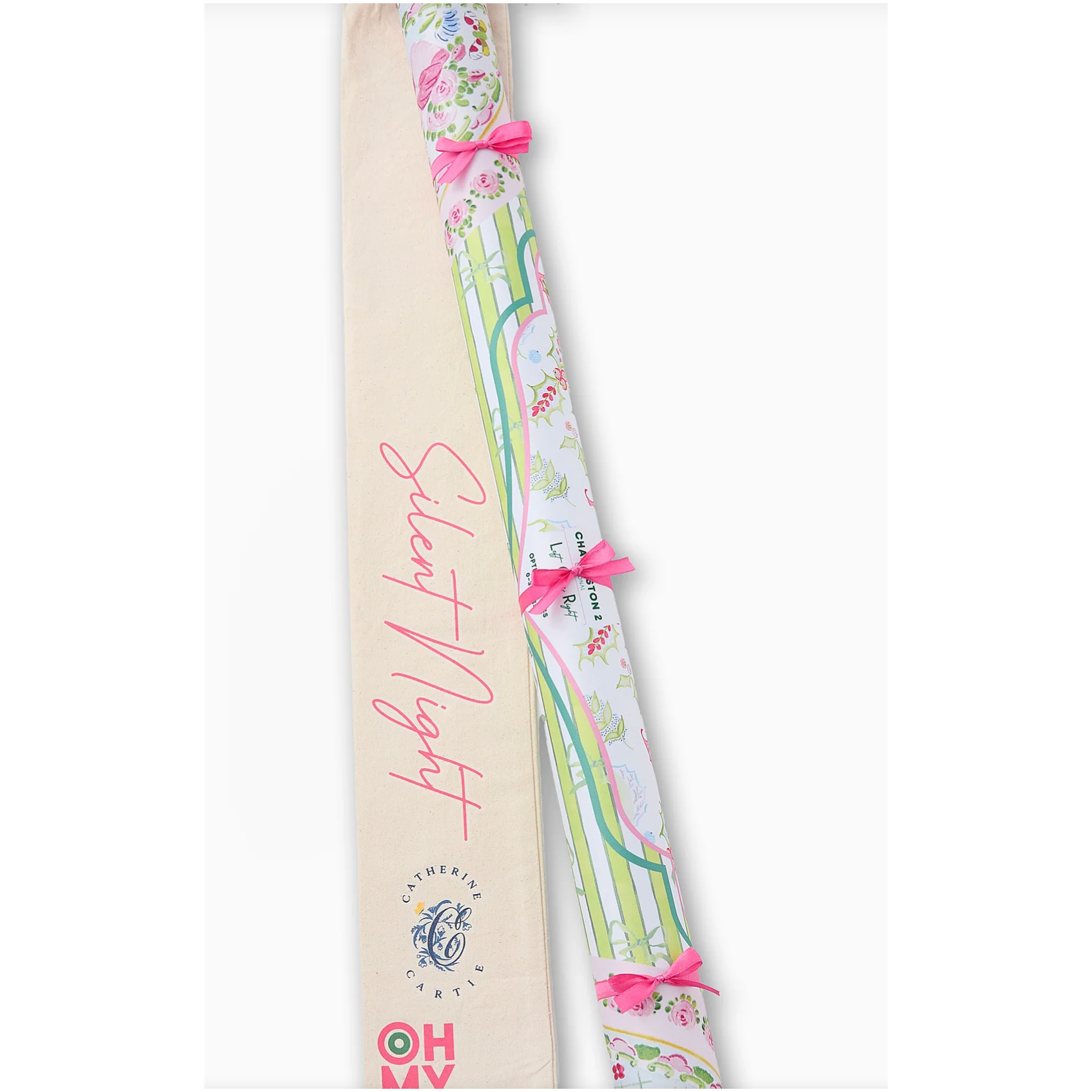 Bring a touch of serenity and sweetness to your holiday season with the Silent Night Mat, a graceful collaboration with Fort Worth-based watercolor artist Catherine Cartie. This mat is a feminine dream, featuring delicate depictions of the Nativity, the guiding North Star, and perfectly placed rosettes that tie the story together. Soft shades of airy pinks and greens create a peaceful, light-filled backdrop, making this mat a timeless piece to add to your tablescape year after year.