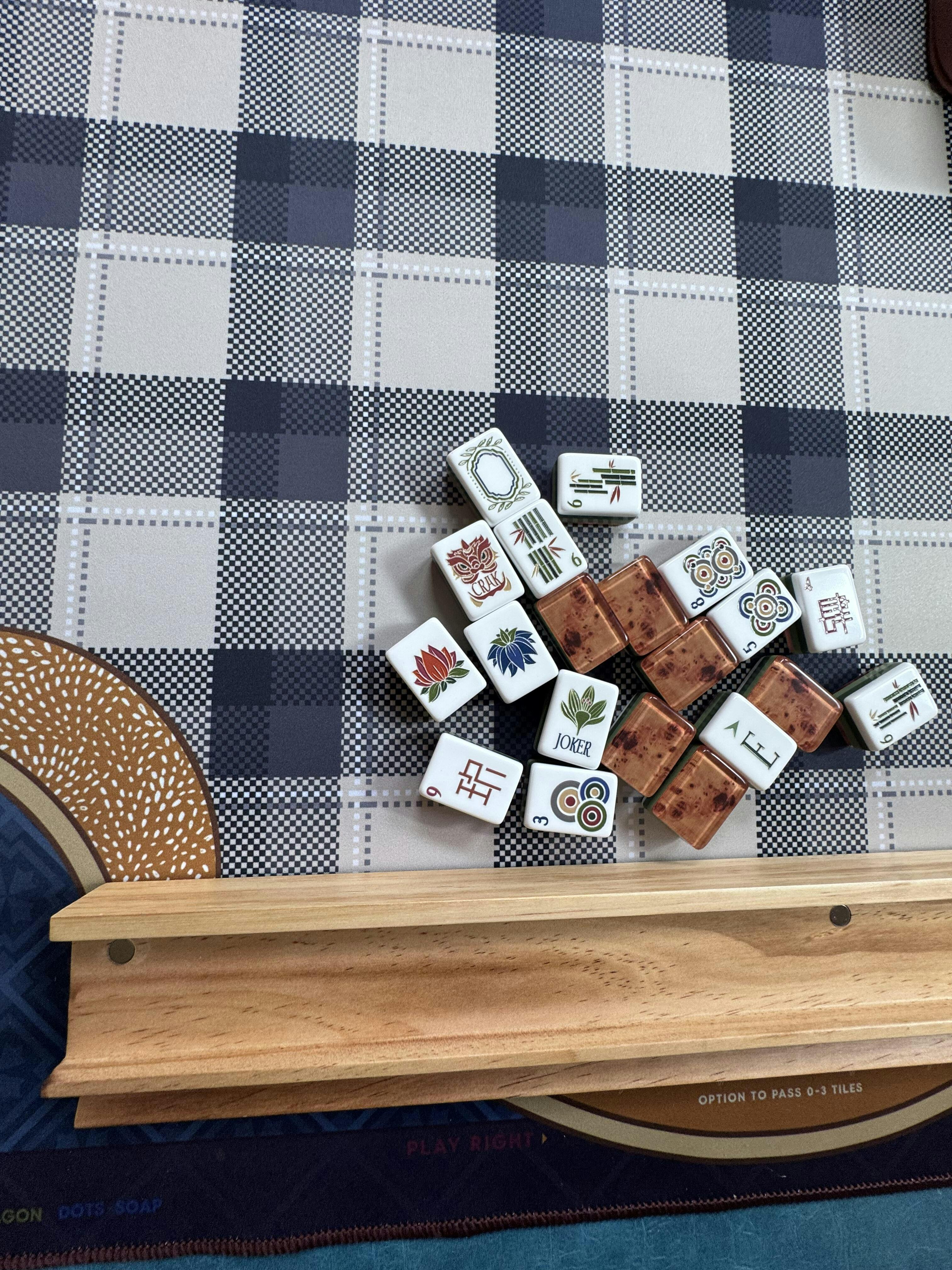 Introducing the Vanderbilt Mat — a distinguished and richly layered addition to your Mahjong setup, crafted for those who appreciate understated luxury and classic sophistication. Featuring a masculine-inspired plaid in deep blues, maroons, greys, and gold accents, this mat brings a warm, polished, and collegiate feel to your game night atmosphere.