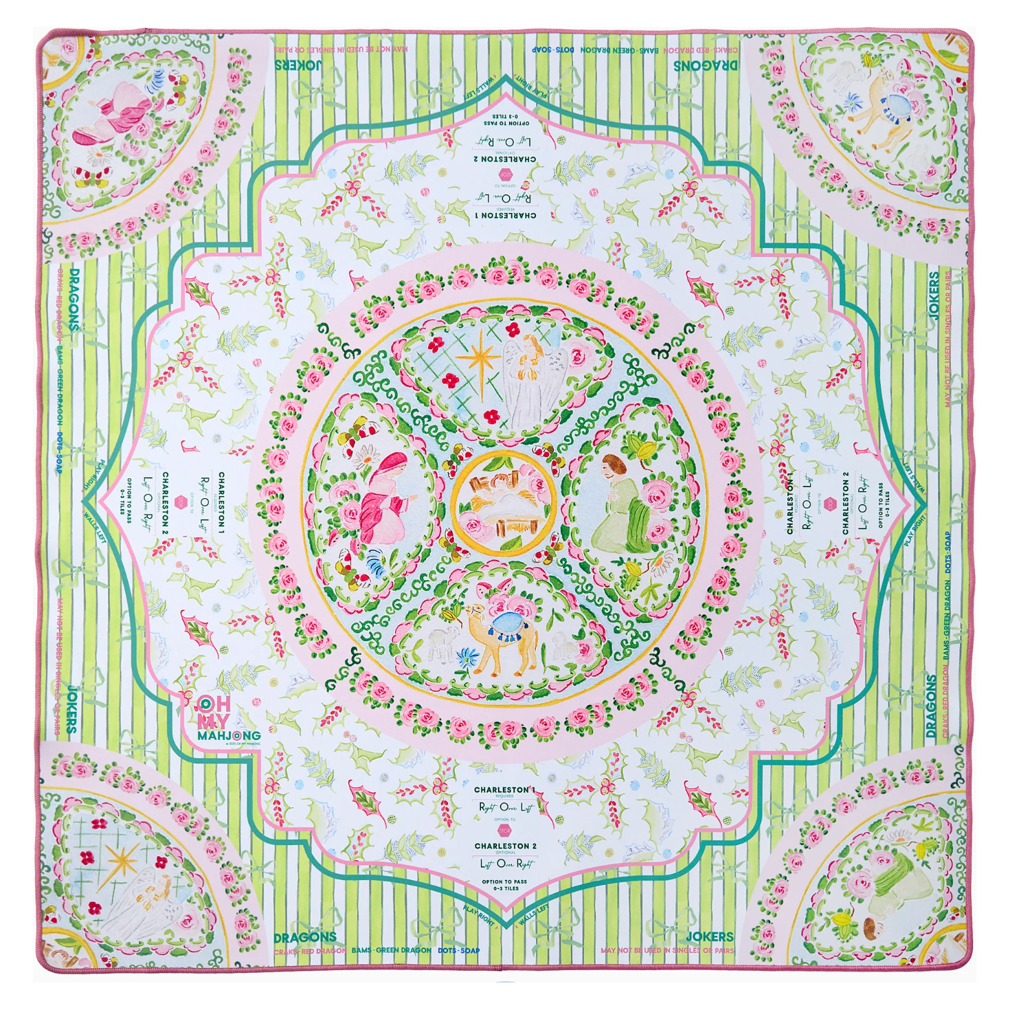 My Fair Mahjong - Green Center- Pink Scallop Mahjong Mat