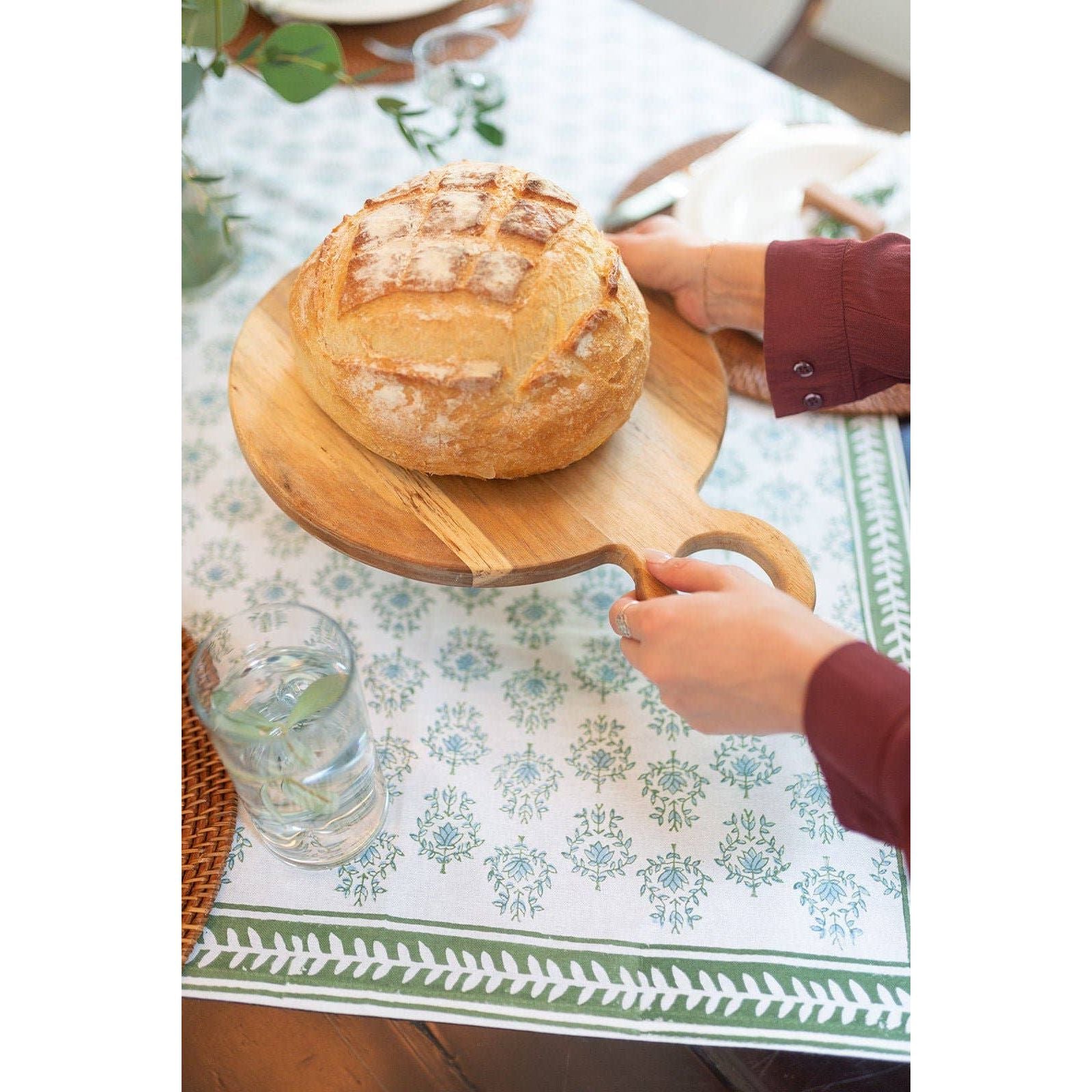 Mended - Table Throw - Lotus, Sage & Uniform Blue with Sage Vine Border