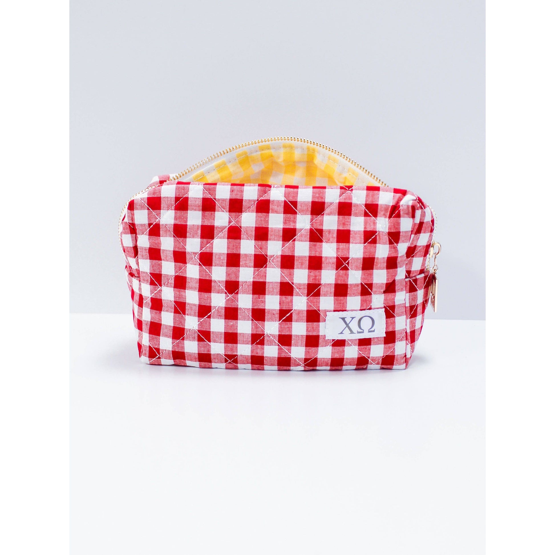Chi Omega Sorority Gingham Quilted Makeup Bag