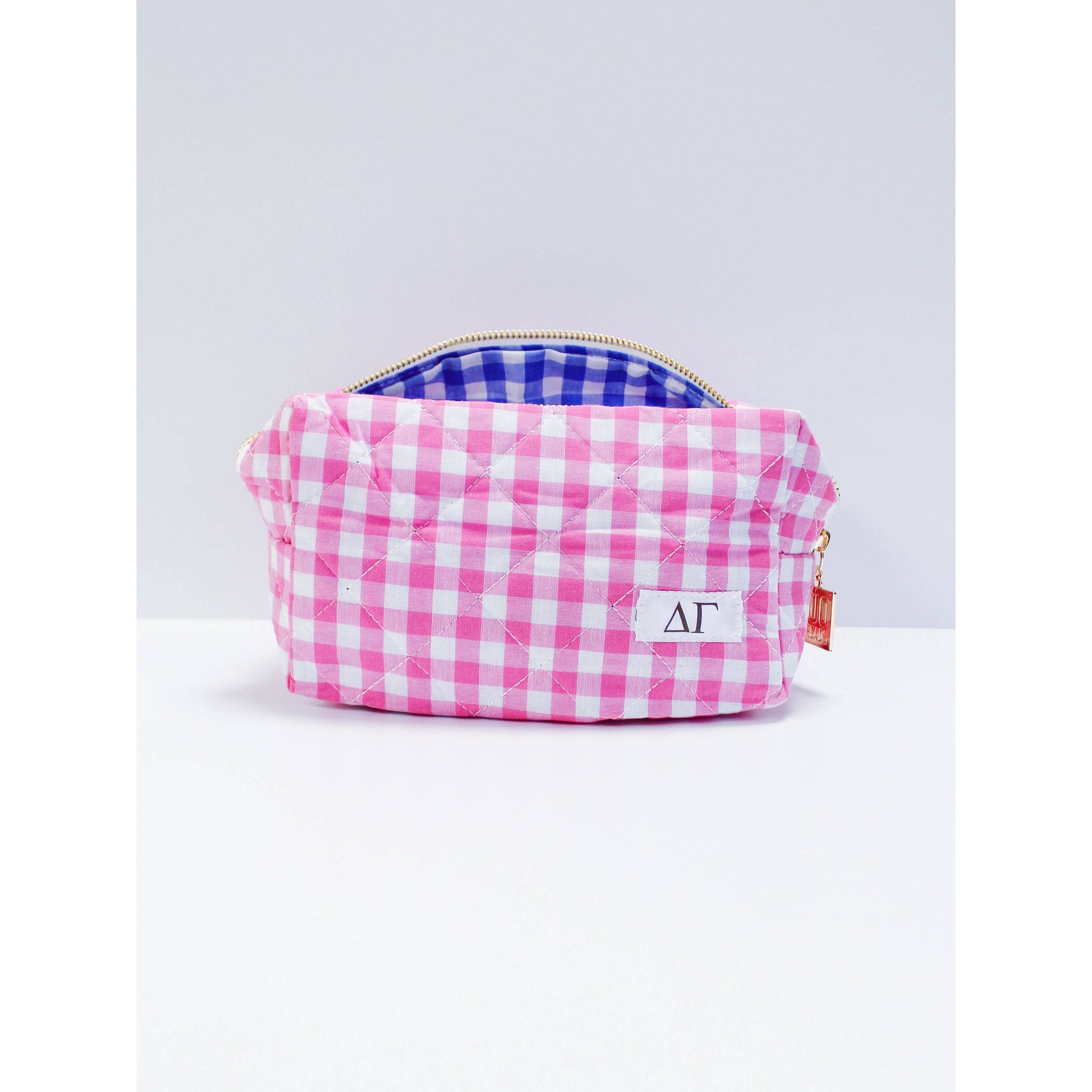Delta Gamma Sorority Gingham Quilted Makeup Bag