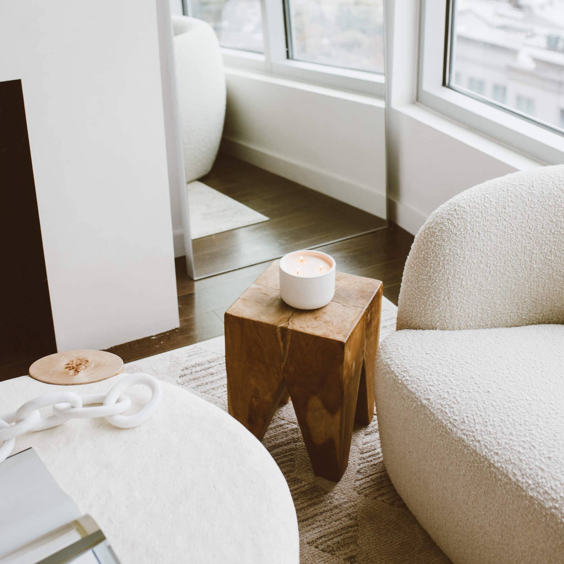 This scented soy candle is made with fragrances infused with lemon, cedarwood, fir needle, and eucalyptus essential oils.