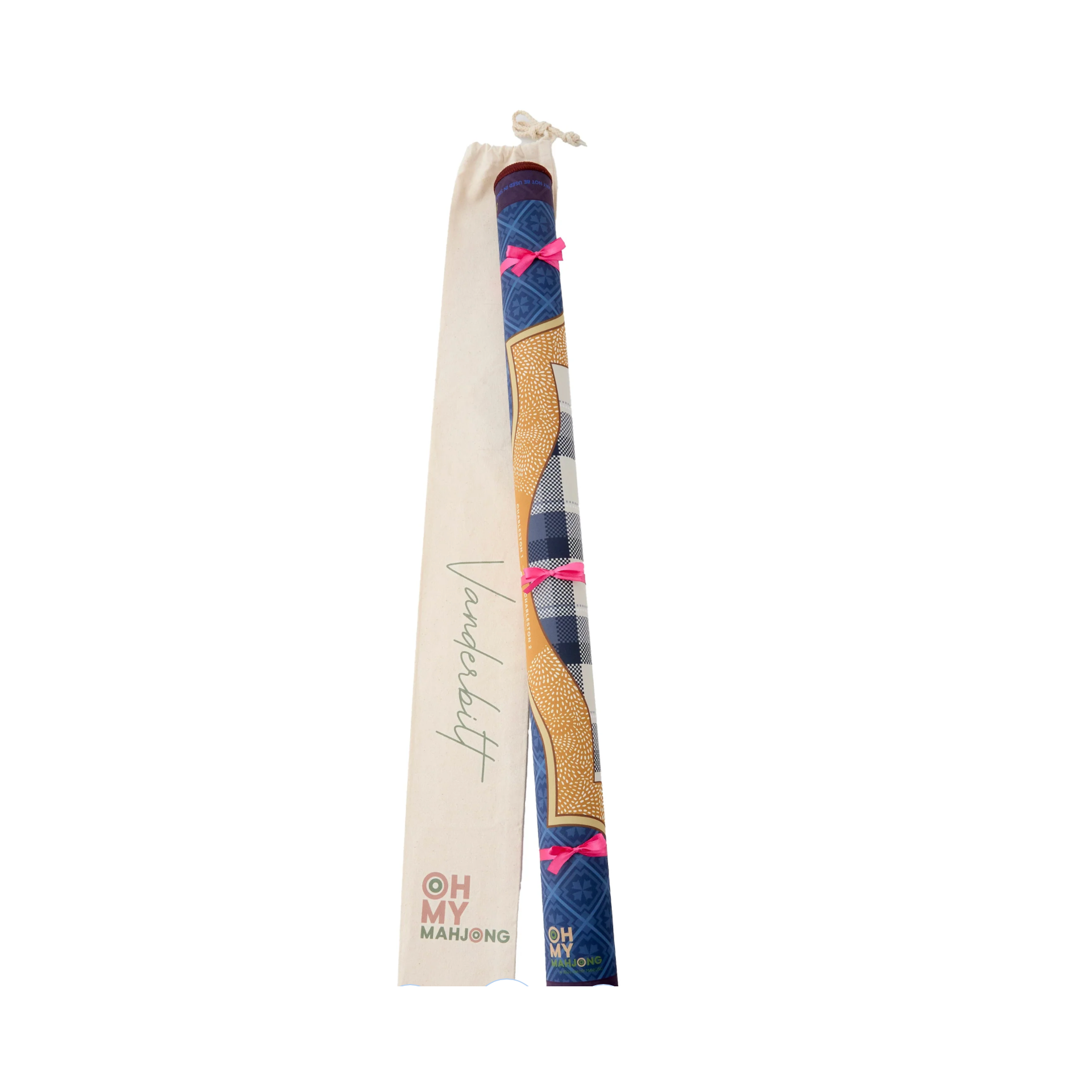 Introducing the Vanderbilt Mat — a distinguished and richly layered addition to your Mahjong setup, crafted for those who appreciate understated luxury and classic sophistication. Featuring a masculine-inspired plaid in deep blues, maroons, greys, and gold accents, this mat brings a warm, polished, and collegiate feel to your game night atmosphere.